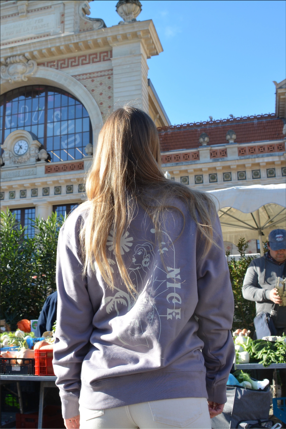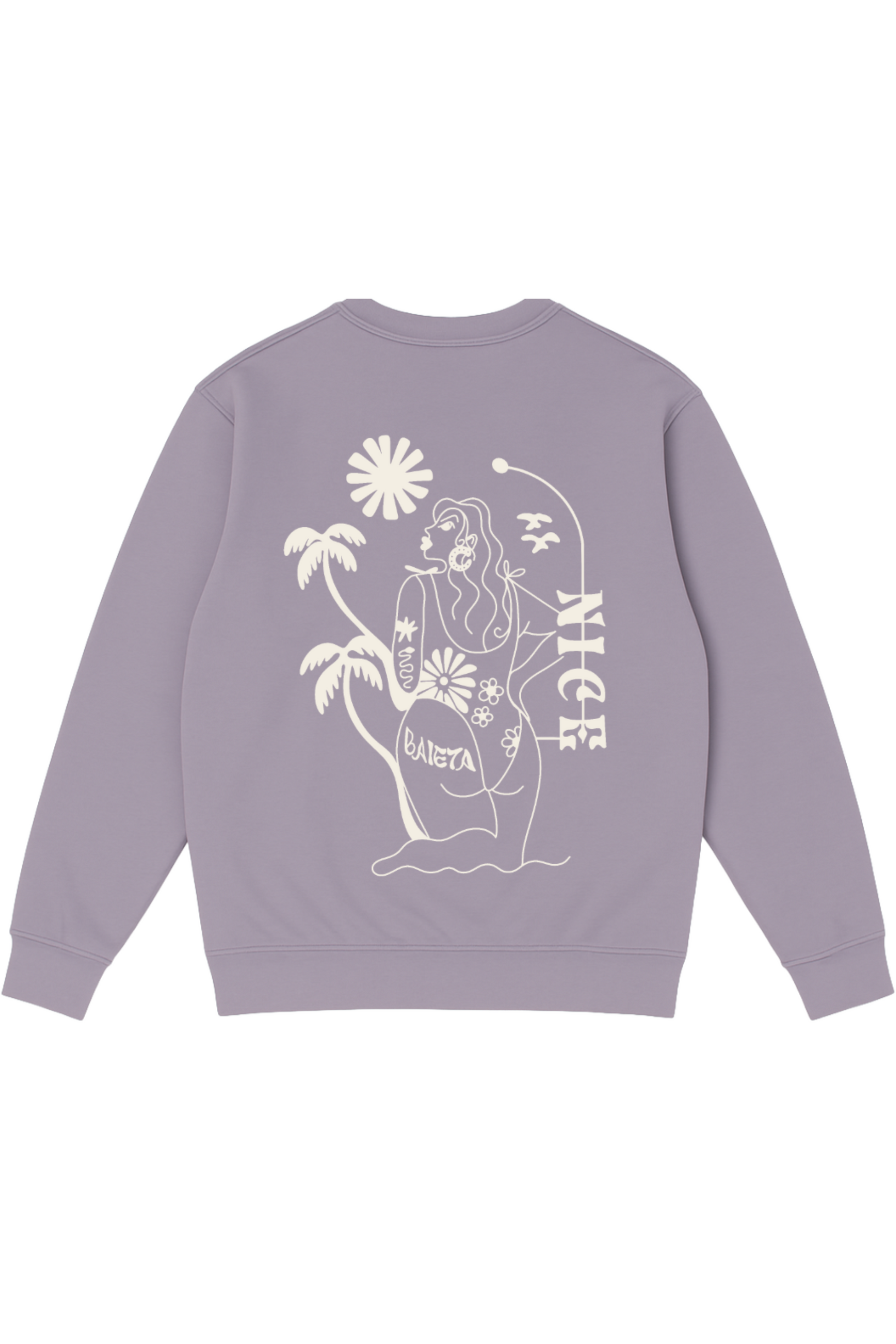 Baieta ! L'un des plus beaux mots niçois, un mot qui sent bon le vieux Nice, les copains, les palmiers et le soleil. Ce sweat reprend l'identité locale avec une touche streetwear grâce au visuel de Manouchka_ink, une de nos artistes locales.